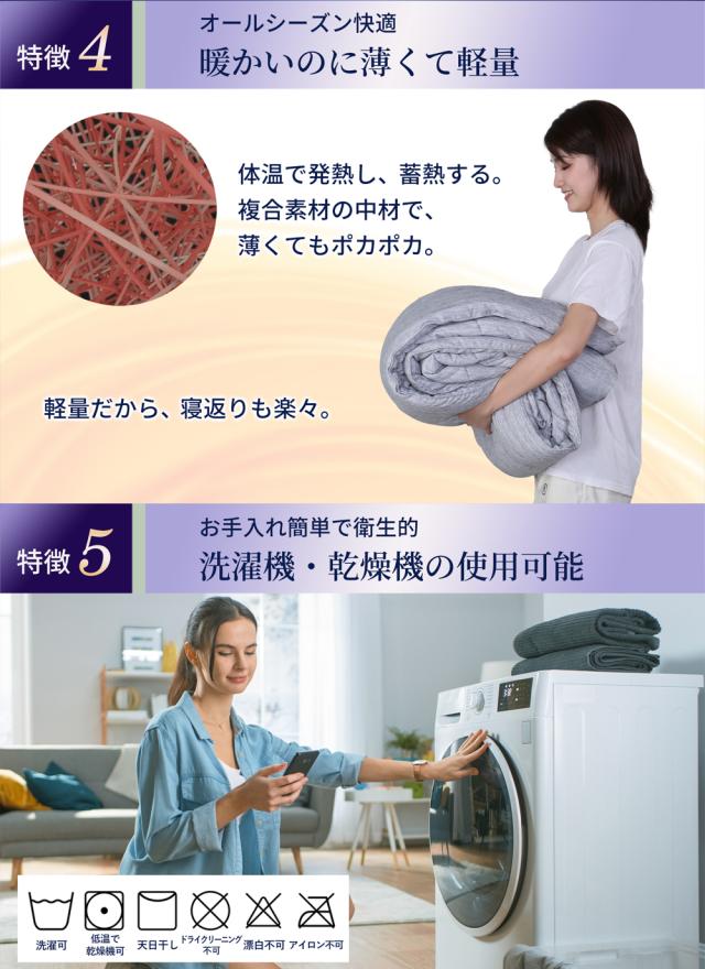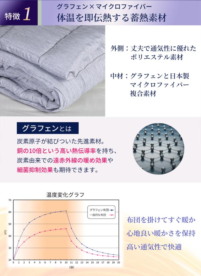 セミダブル 羽毛の2倍の暖かさ 高熱伝導グラフェン布団 洗濯OK