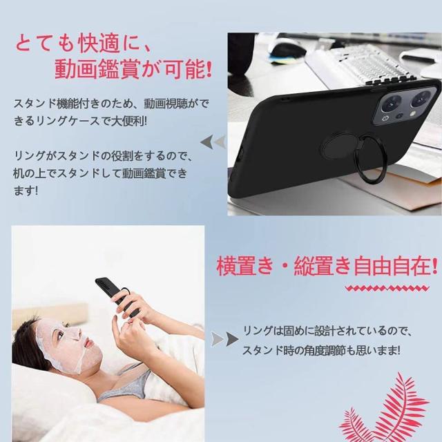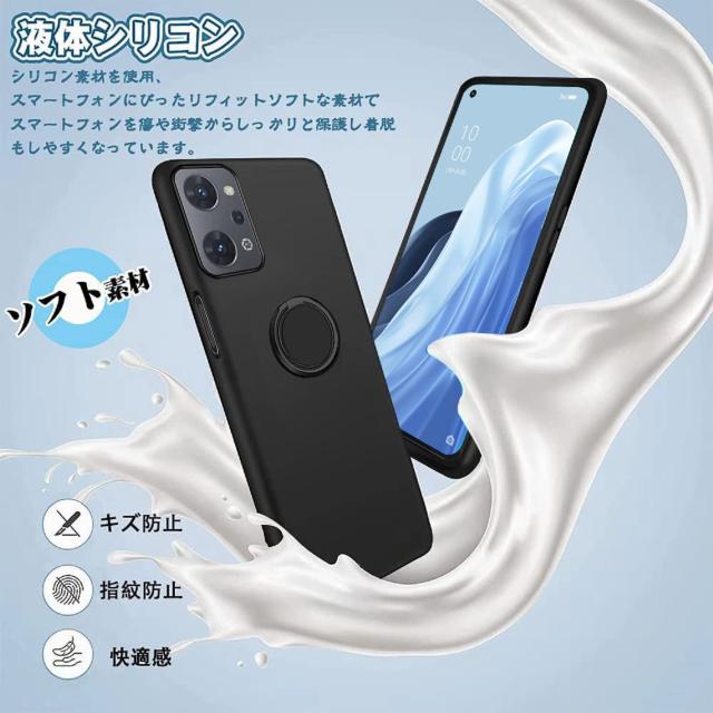 OPPO Reno7 A ケース シリコン リング付き 360°回転可能 耐衝撃 薄型 TPU スリム 軽量 スタンド機能 車載ホルダー対応 ストラップホール付き オッポ リノ7a 指紋防止 防止 レンズ保護 reno7a カバー レノ7a 保護カバー au yモバイル 楽天モバイル uqモバイル 2022 新型