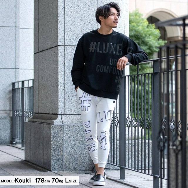 セール SALE パンツ メンズ スウェットパンツ ジョガーパンツ リブパンツ ジャガード 裏毛 ロゴ LUXE/R ジム トレーニングウェア 部屋着 ルームウェア カジュアル ロゴ ブラック グレー ホワイト 黒 白 M L XL 大人 秋 冬 20代 30代 40代 メンズファッション 即日発送 [45257]