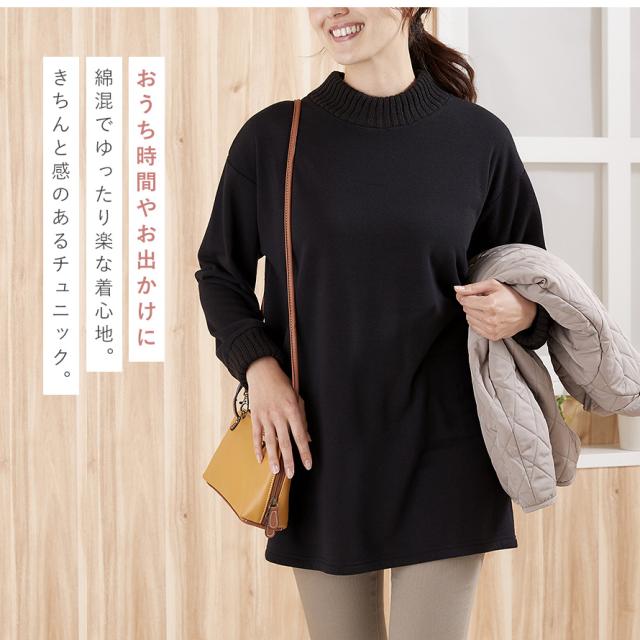 ふんわり厚みのあるリブにゆったり暖かな裏起毛チュニック。きちんと感のあるチュニックだから、おうち時間やお散歩、お出かけなど毎日を心地良く活躍するアイテムです。
