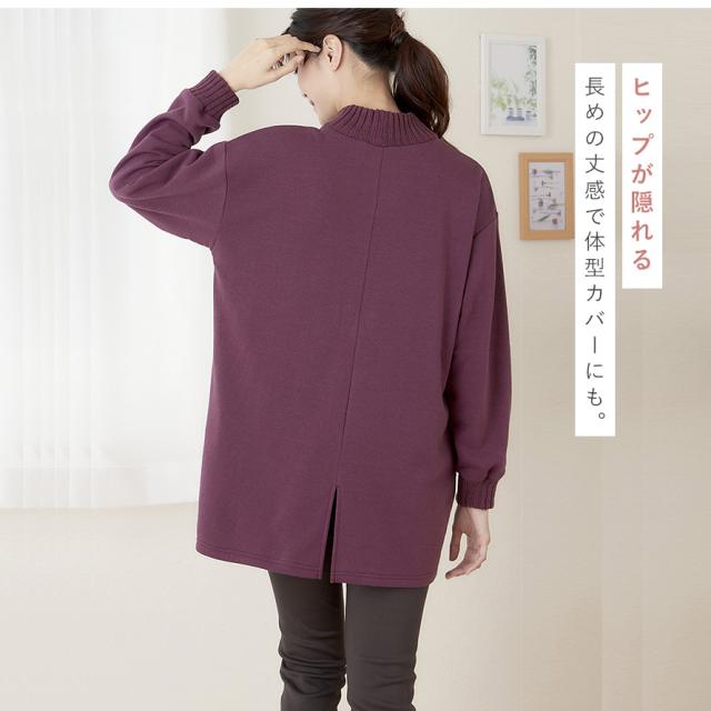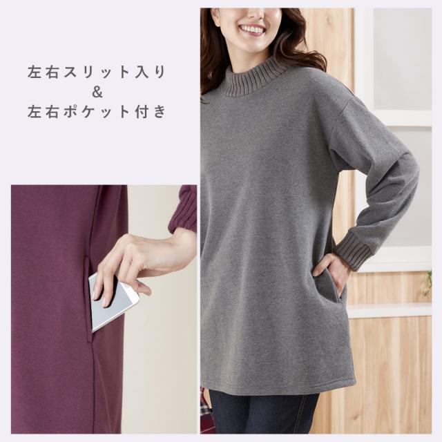 チュニック 長袖 大人可愛い プルオーバー 裏起毛 レディース トップス 冬 リブ使い裏起毛チュニック 暖か あったか 秋 冬 カジュアル きれいめ 無地 シンプル 50代 60代 70代 ミセスファッション 婦人服 ゆったり 大きいサイズ 体型カバー 母 ポケット付き