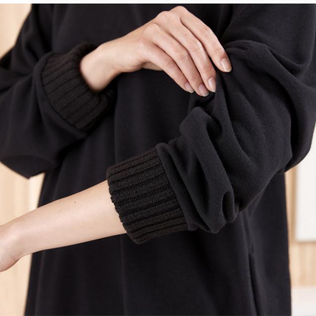 首元と袖口に厚みのあるリブを使い、おしゃれなのにゆったり楽な着心地!