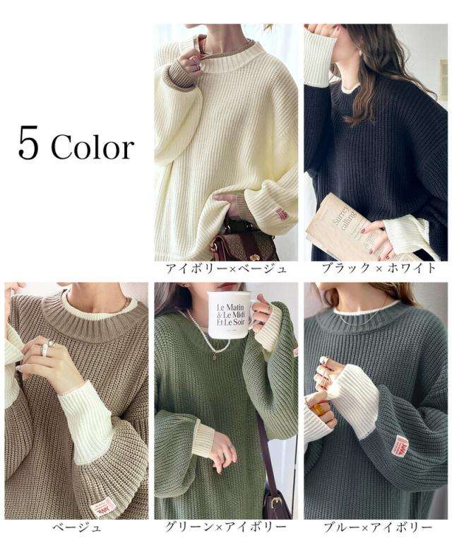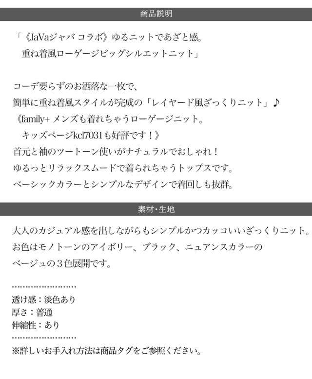 冬新作 クラシカルエルフ レディース 体型カバー《Javaコラボ》トップス ニット ざっくり 重ね着風 レイヤード ボリューム袖 オーバーサイズ ゆったり 長袖 大きいサイズ jv0780005