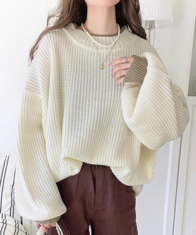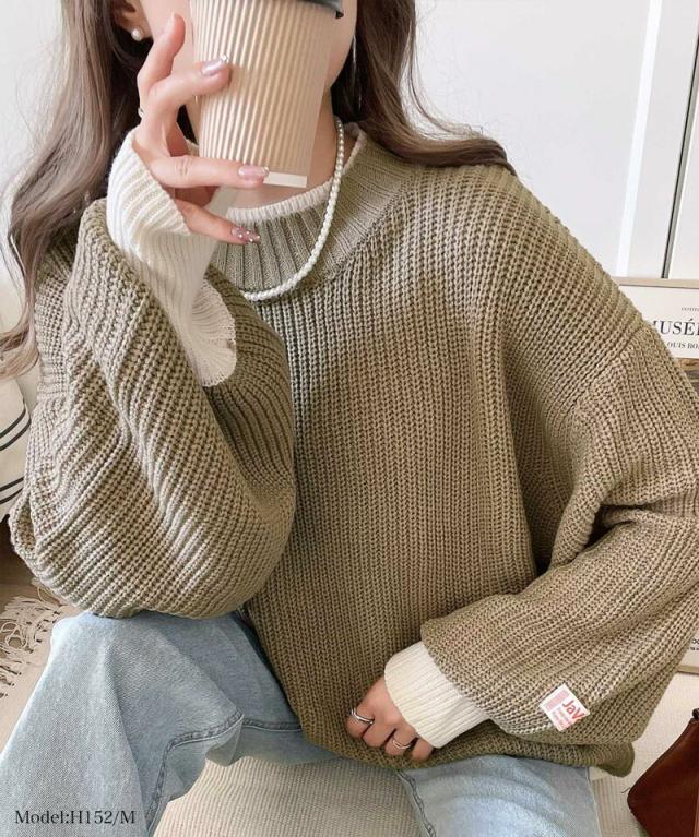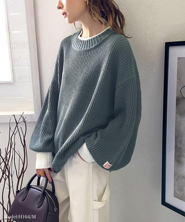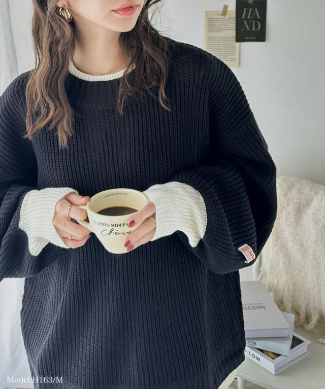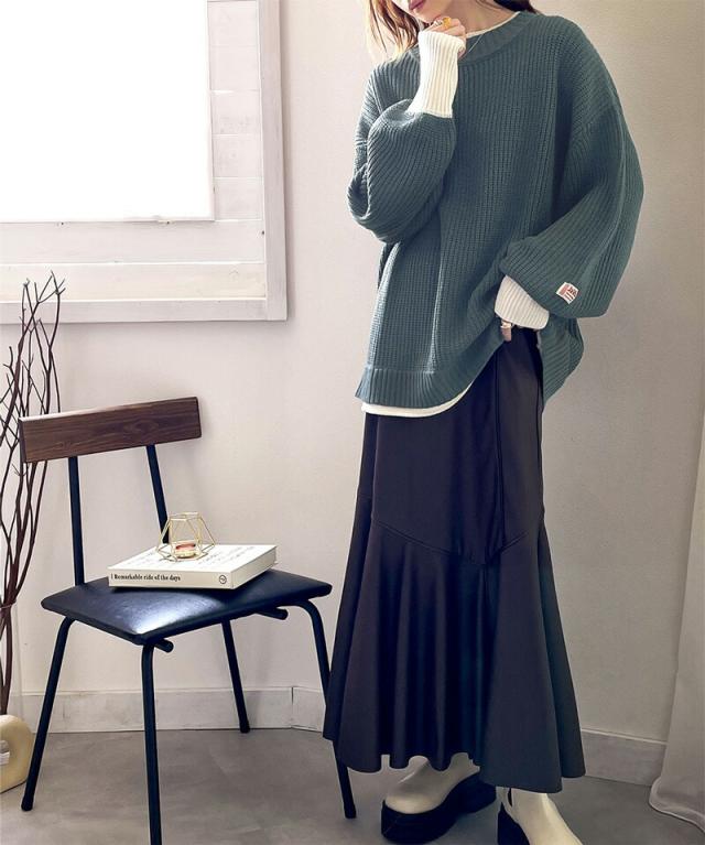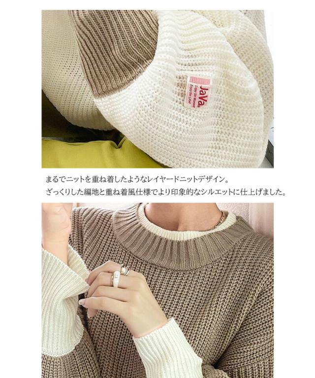 ★《JaVaジャバ コラボ》ゆるニットであざと感。重ね着風ローゲージビッグシルエットニット★