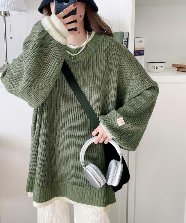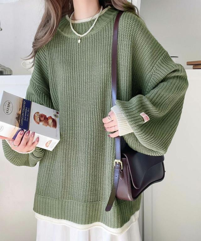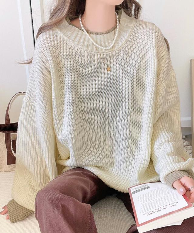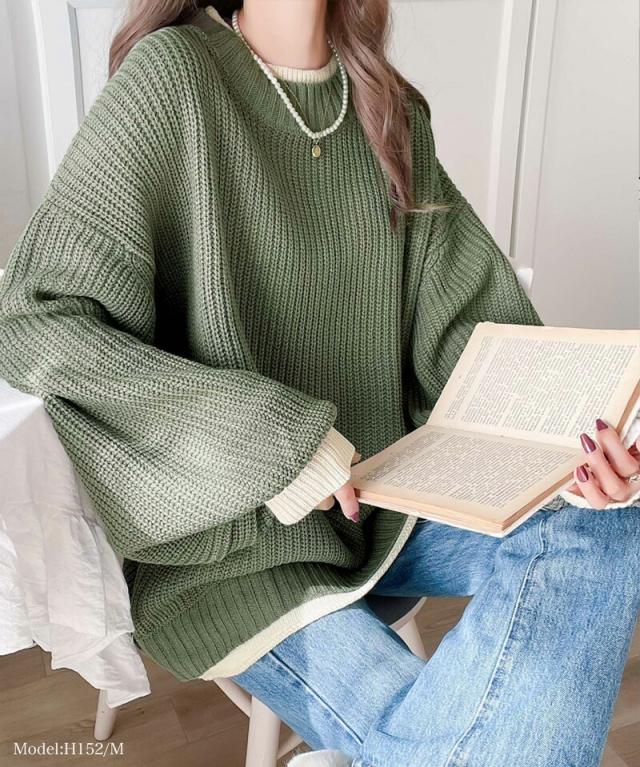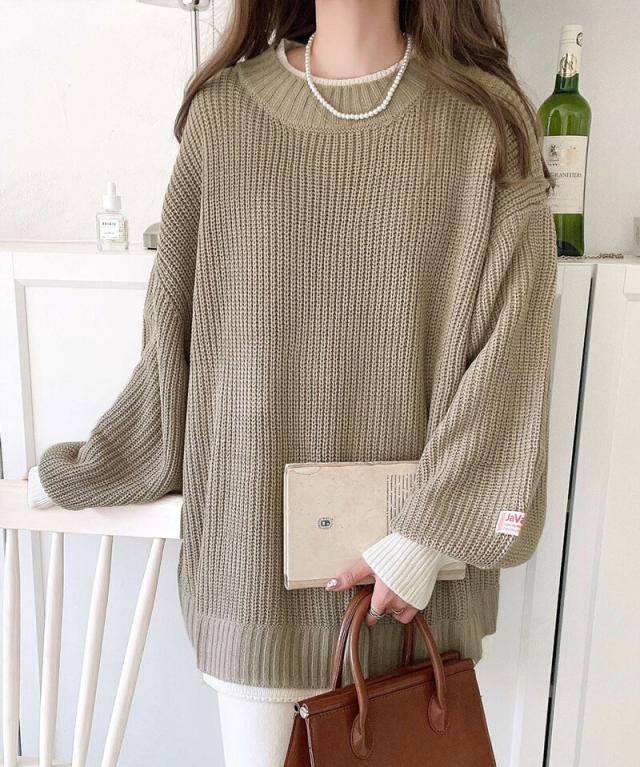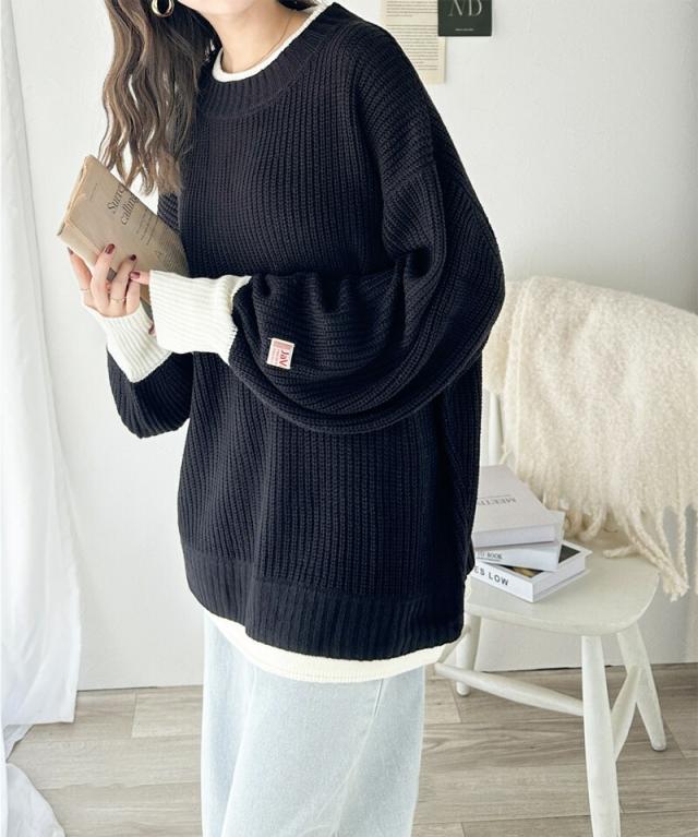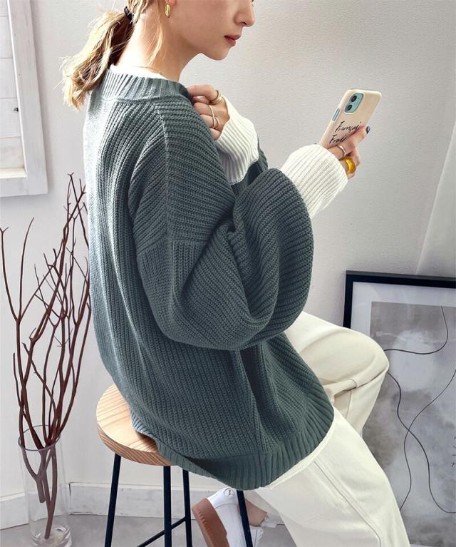 ★《JaVaジャバ コラボ》ゆるニットであざと感。重ね着風ローゲージビッグシルエットニット★