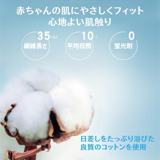 赤ちゃんの肌に優しくフィット。心地よい肌触りのコットンを使用しています。