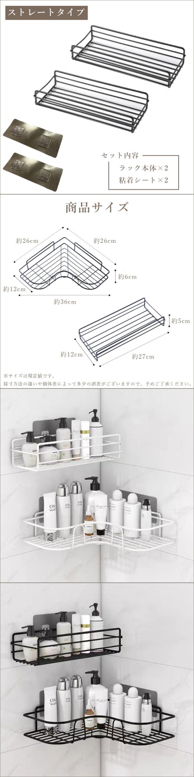 | 商品 特徴 | 【選べる2タイプ】 使用場所に応じてコーナータイプとストレートタイプをお選びいただけます。 【ワイヤーデザイン】 通気性がよく水が溜まらず流れ落ちるので、清潔に使用可能。 【高い耐久力】 耐荷重は約3〜5kgあるので安心です。 |