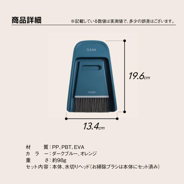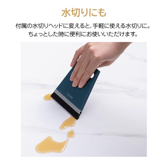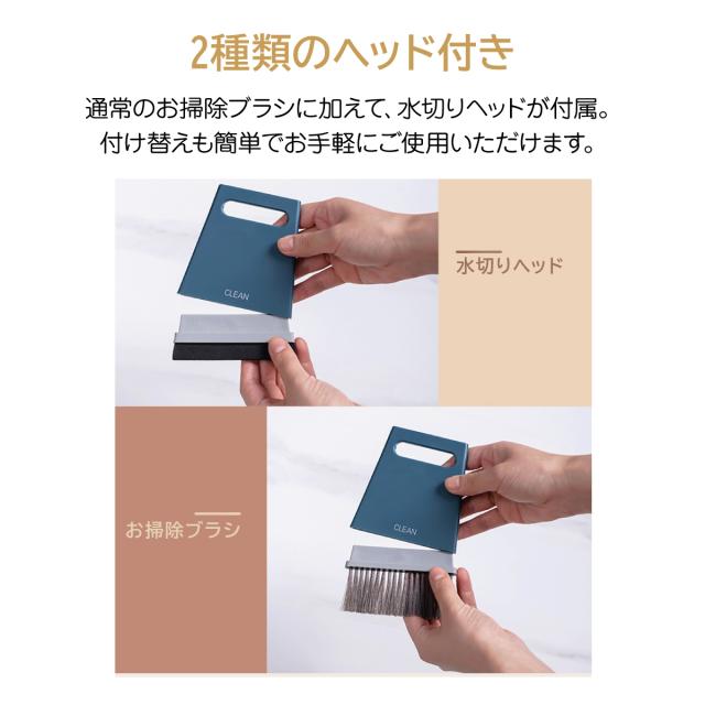 【2種類のヘッド付き】通常のお掃除ブラシに加えて、水切りヘッドが付属。付け替えも簡単でお手軽にご使用いただけます。