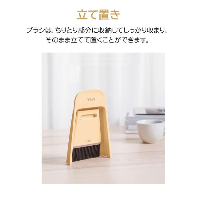 【立て置き】ブラシは、ちりとり部分に収納してしっかり収まり、そのまま立てて置くことができます。