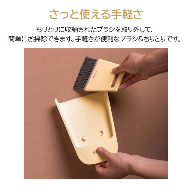 【さっと使える手軽さ】ちりとりに収納されたブラシを取り外して、簡単にお掃除ができます。