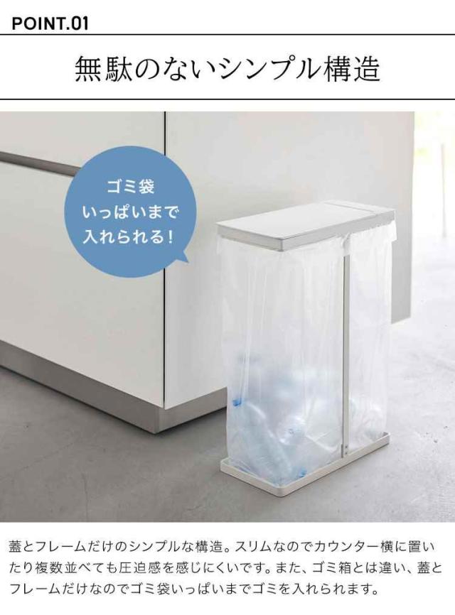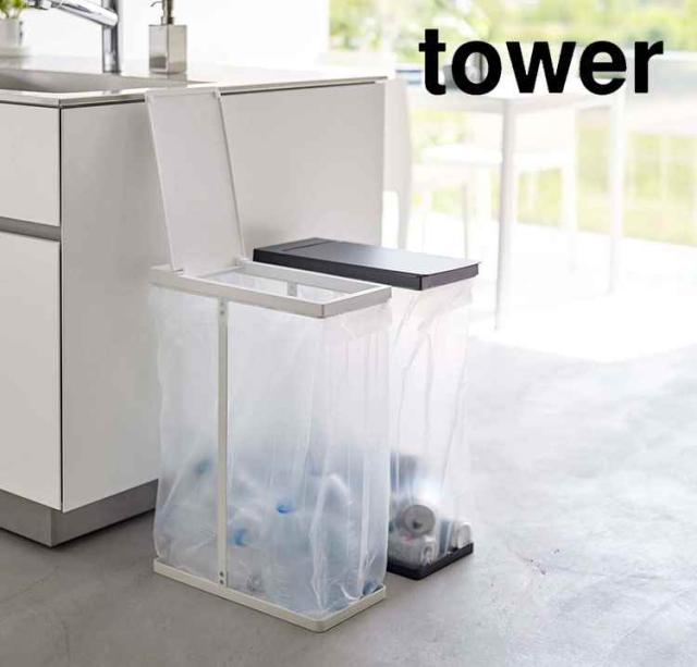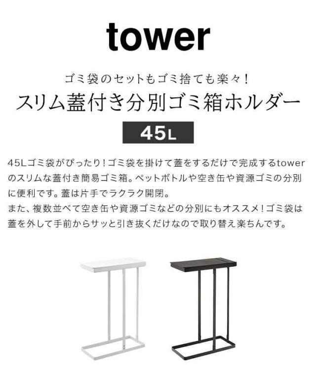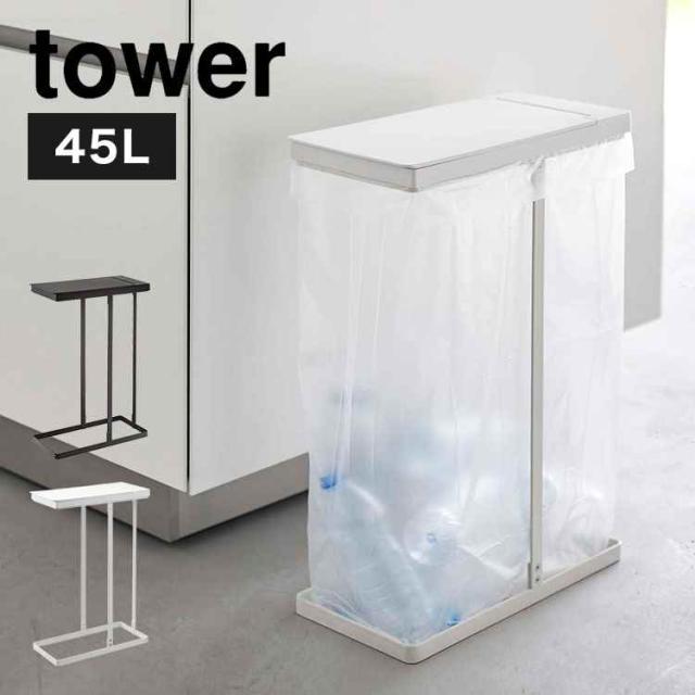 ゴミ箱 45リットル 山崎実業 スリム蓋付き分別ホルダー45L ゴミ箱 ふた付き tower タワー レジ袋 キッチン ダストボックス 45L 蓋付き フタ付き スリム スタイリッシュ ホワイト ブラック 北欧 おしゃれ 生ごみ 幅19cm 幅20cm 5838 5839 シンプル 角形 ごみ箱