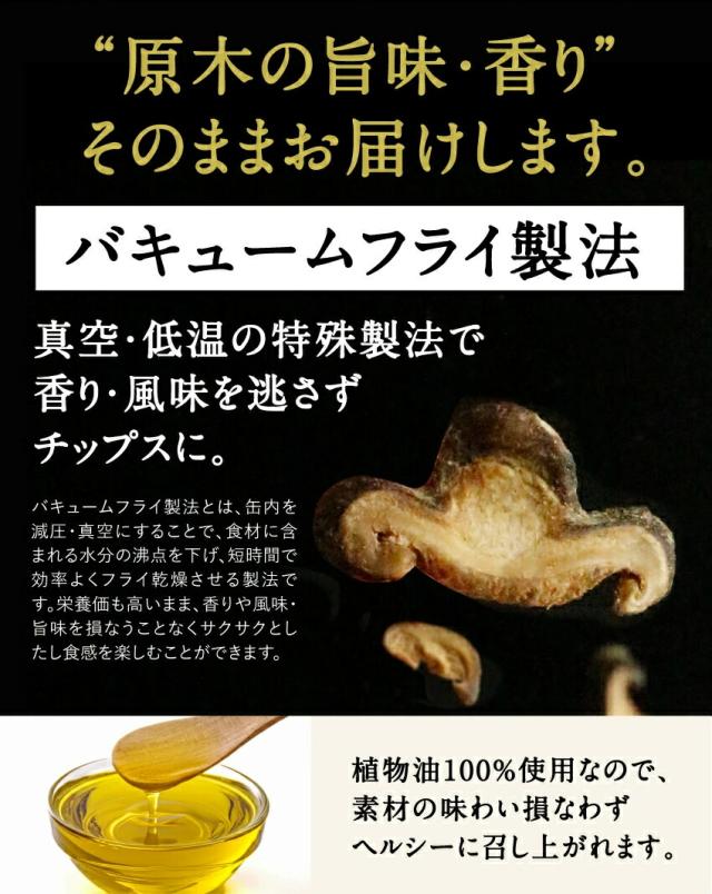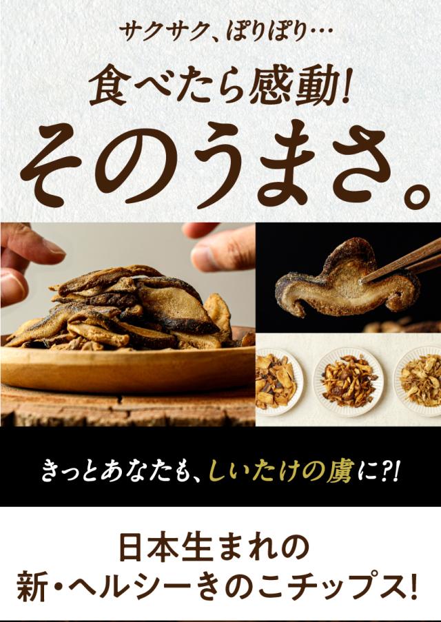 - ダイエット中でも食べれそうと思い購入しました。 パリっとして、しいたけの旨味もあり、美味しかったです。止まらなくて一袋あっという間に食べてしまいました。