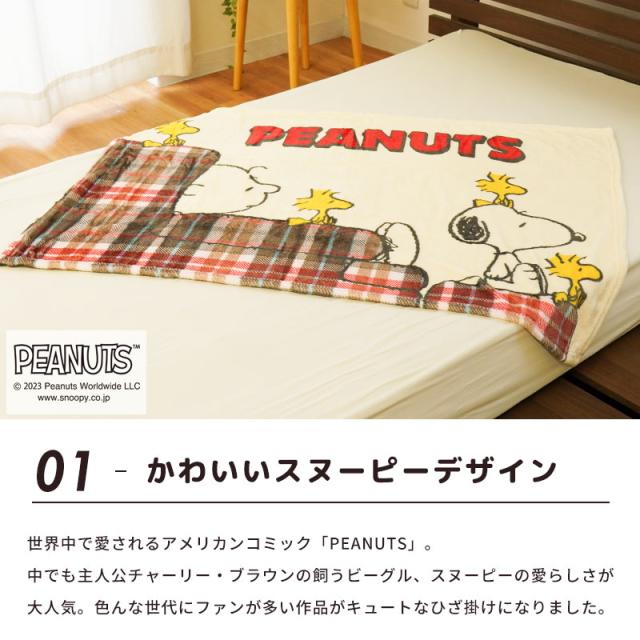 スヌーピーのデザインがかわいい西川のあったかひざ掛け
