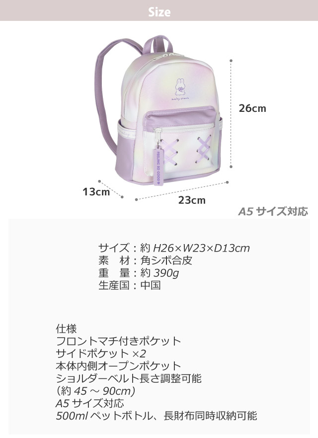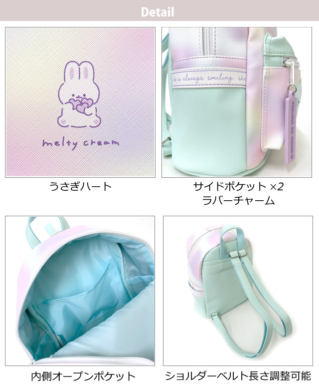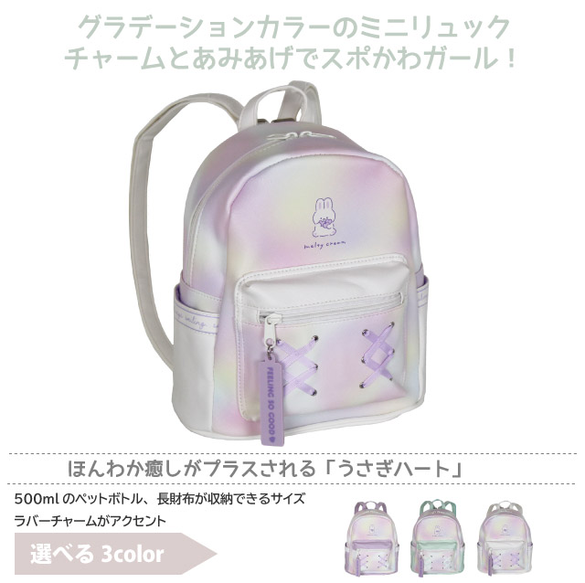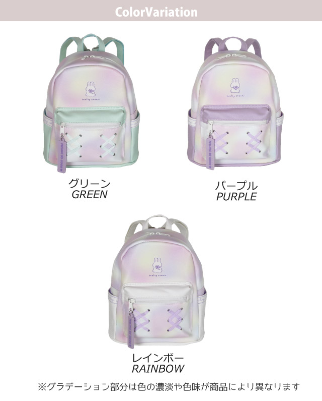 ■イメージ・その他:おしゃれ お洒落 人気 人気 ランキング 可愛い かわいい 使いやすい 長財布収納可能 500mlペットボトル収納可能 パープル 紫 グリーン 緑 ミント レインボー 虹 グラデーション ハート うさぎ ガーリー 韓国 オルチャン 可愛いリュック ミニ 小さめ 小学生誕生日プレゼント 包装 無料ラッピング ラッピングバッグ