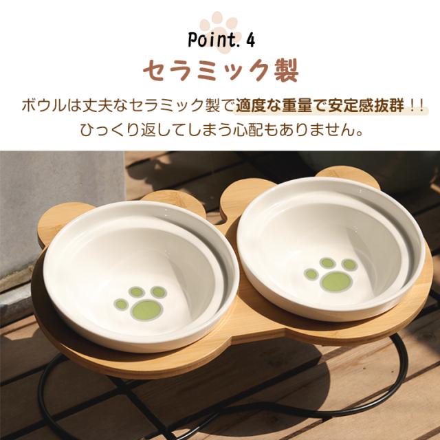 ペット食器 ダブル フードボウル 食べやすい 肉球 陶器 磁器 犬 猫 ネコボウル お皿 餌入れ 水入れ エサ皿 かわいい えさ皿 ご飯皿 水飲み pt069