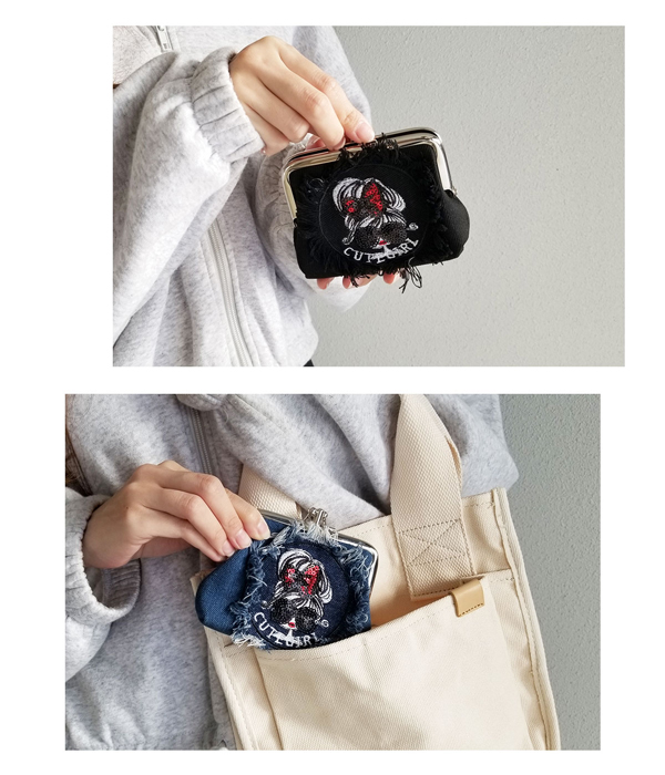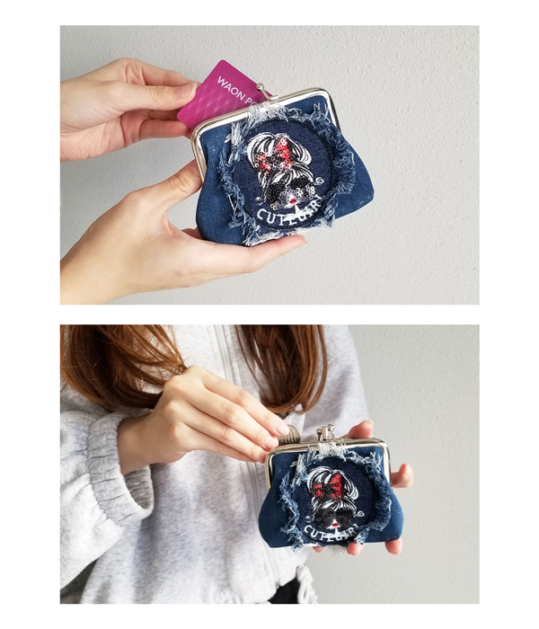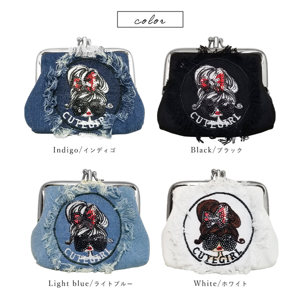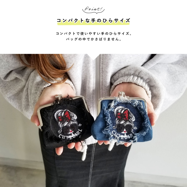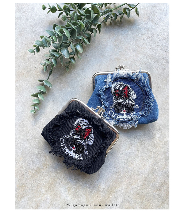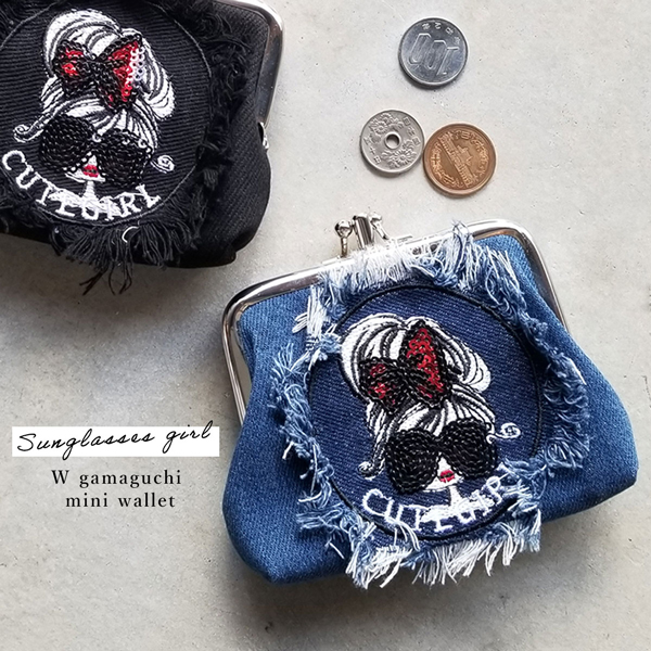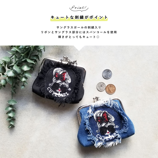 ミニ財布 財布 サングラスガール レディース 小さめ 使いやすい がまぐち デニム 小銭入れ 薄い コインケース ガール gilr 女の子 デコ コンパクト おしゃれ 送料無料 母の日 プレゼント ギフト