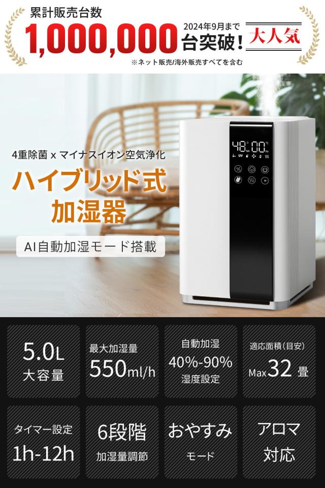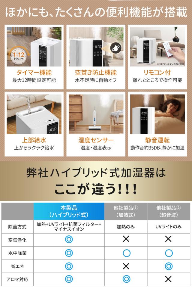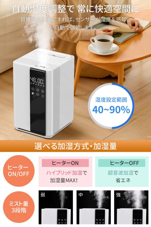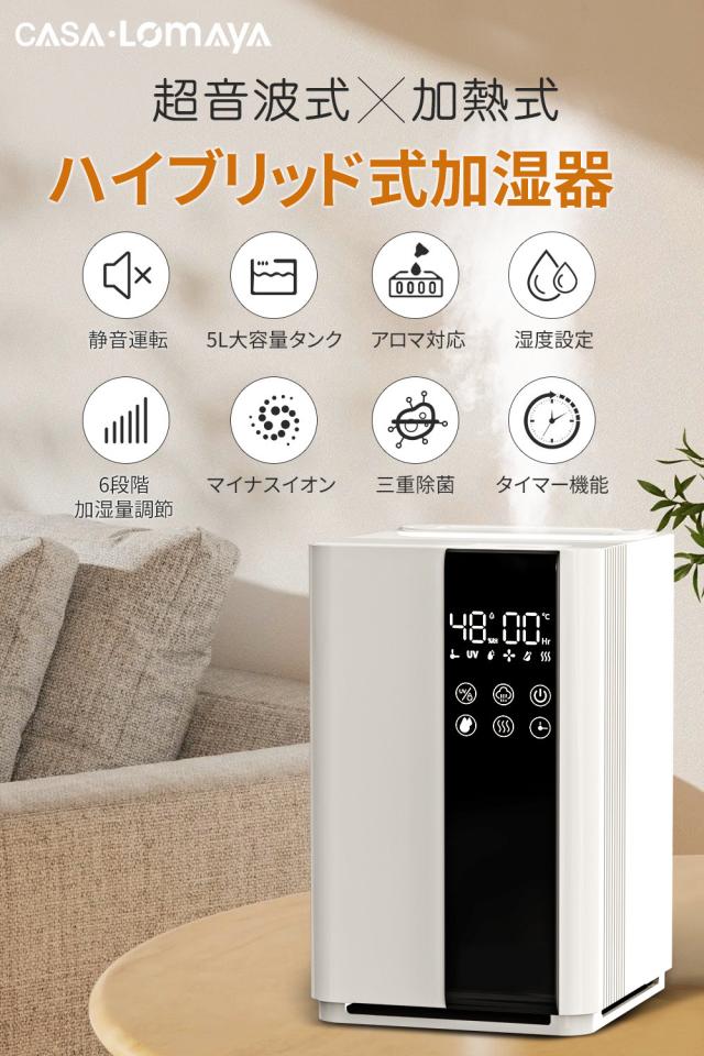 加湿器 ハイブリッド ハイブリッド式加湿器 5L 超音波加湿器 加湿器 大容量 最新型 卓上加湿器 上から注水タイプ 静音 超音波式かしつき お手入れ簡単 空焚き防止機能付き手軽 乾燥対策 置き場所 床置き 事務所 オフィス 部屋 学校 幼稚園 家庭用 会社 乾燥対策 お肌 保湿 効果 空焚き防止