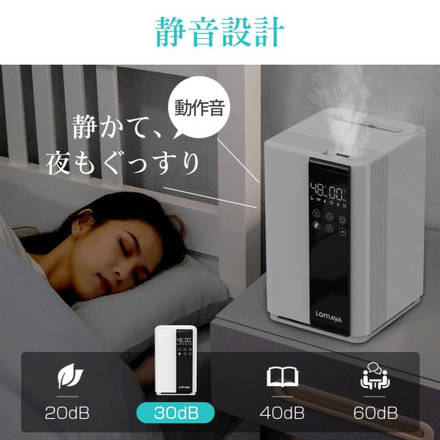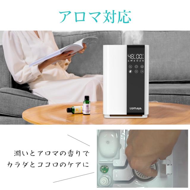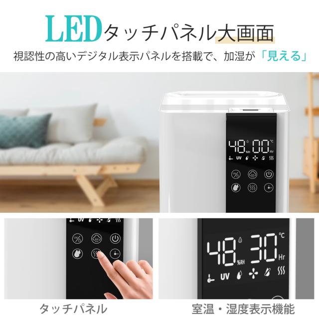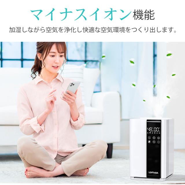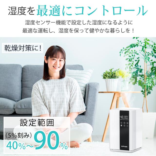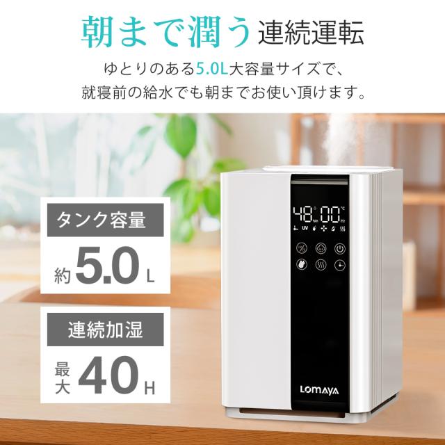 【新登場・AIスマート】 加湿器 大容量 5L 3重除菌 最大40時間連続運転 マイナスイオン機能 UV除菌 抗菌カートリッジ アロマ対応 焚き防止 自動湿度調節 タイマー付き