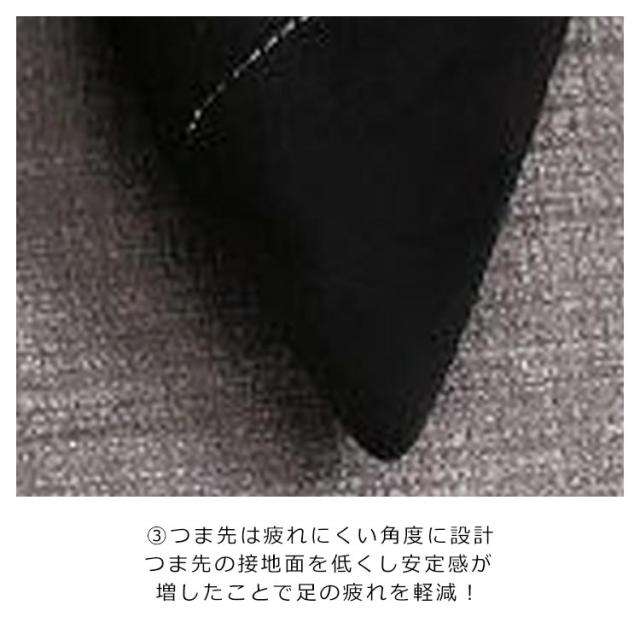 | SNSで話題!走れる美脚パンプス! 当店オリジナル“走れるパンプス”シリーズの 7センチヒールが新機能を加えモデルチェンジ! より洗練された美しいシルエットへ進化しました! シンプルだからこそ、履き心地やフォルムの美しさに徹底的にこだわった 当店オリジナルパンプスです。 柔らかく疲れにくい履き心地のポイント インソール全面にふわふわの低反発クッションが入っており、 包み込まれるような履き心地に。 かかと部分にはクッションを入れ、フィット感アップ。 かかとがパカパカしにくくなりました。 つま先は疲れにくい角度に設計。 つま先の接地面を低くし安定感が増したことで足の疲れを軽減! 上品でなだらかなトゥ。 以前よりもなだらかな角度に設定し、シャープすぎない上品な印象に。 シンプルで飽きのこないなデザインで、 普段履きにはもちろん、結婚式やパーティ、 入学式、卒業式、通勤、フォーマルシーンにも大活躍。 ぜひ一度履き心地を体感してみて下さい。 | |