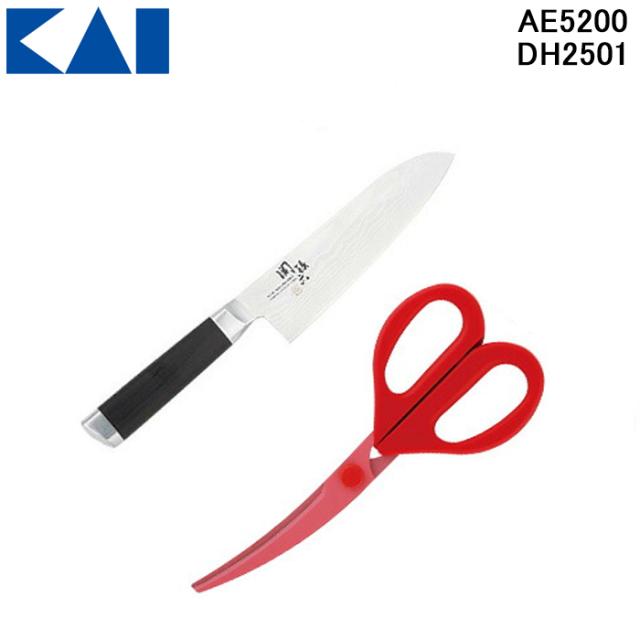 貝印 AE-5200・DH-2501 関孫六 ダマスカス 三徳包丁 165mm・カーブキッチンバサミ 2点セット