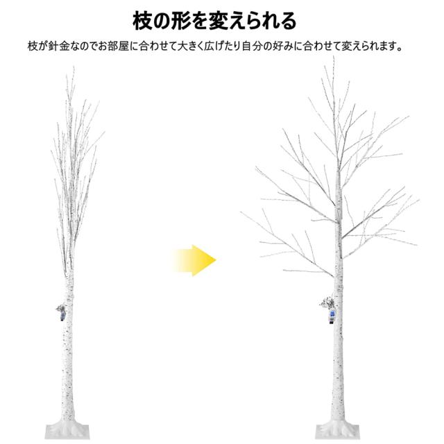 白樺風のデザインがとてもおしゃれなクリスマスツリーです。お部屋の片隅に置いたら存在感が増すブランチツリーでLEDライトがあちこちに散りばめられています。