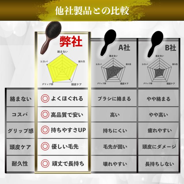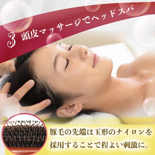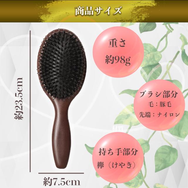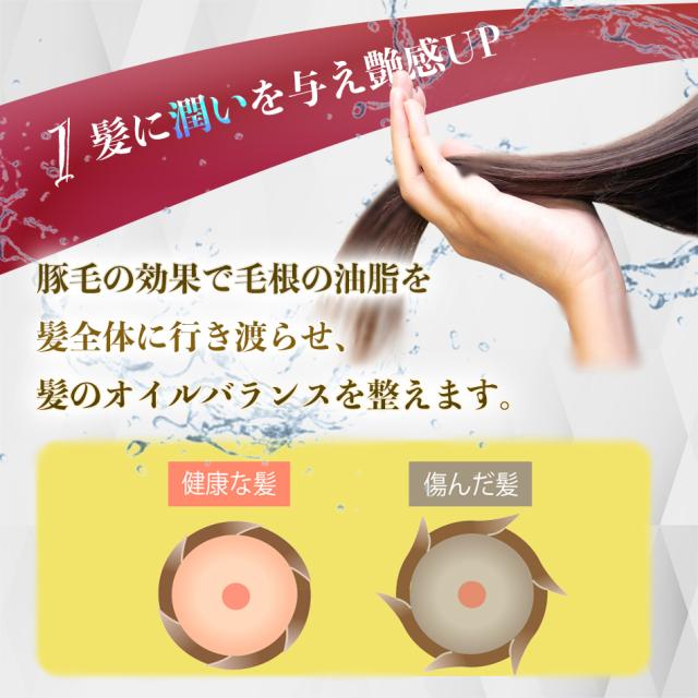 豚毛の水分と油分で髪のキューティクルを整え、髪のオイルバランスを整えます。