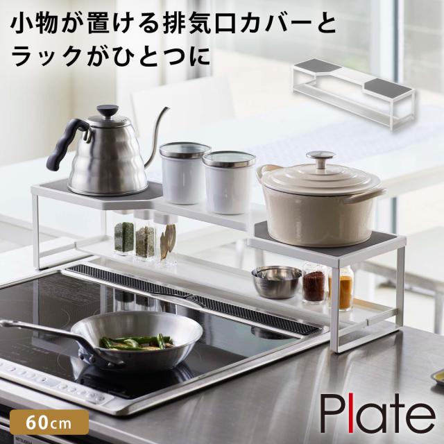 排気口カバー 60cm フラット コンロ奥ラック 隙間 コンロ奥棚 キッチン 山崎実業 ホワイト 白 コンロ奥ラック 排気口カバー付き 60cmコンロ用 ホワイト プレート