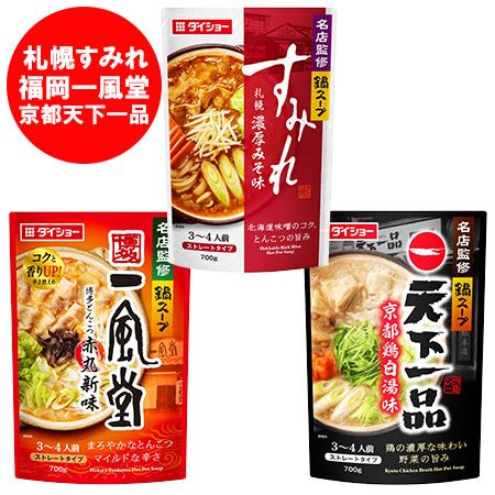 鍋スープ ダイショー 鍋の素 札幌 すみれ 濃厚みそ味 鍋スープ / 福岡 一風堂 博多とんこつ 赤丸新味 鍋スープ / 京都 天下一品 鶏白湯味 鍋スープ ダイショー 各1袋 計3袋 調味料 料理の素 鍋の素