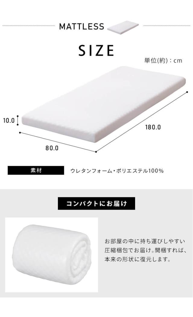本体(外寸):幅約80.2×奥行約194.0(床板までの高さ約39.3cm、ヘッドボードの高さ約72.5cm)