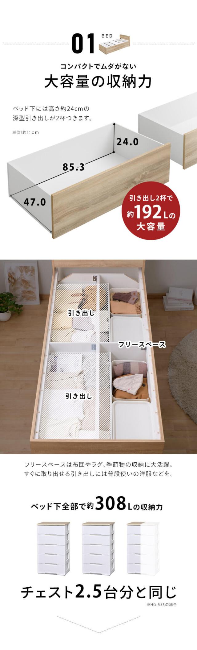コンパクトでも「収納量」にこだわった大容量収納ベッド。