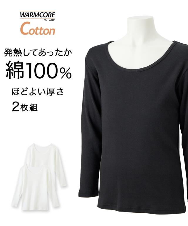 キッズ ウォームコアコットン あったか 綿100% 吸湿発熱 長袖 インナー 2枚組 男の子 女の子 子供服 ジュニア服 冬 黒2枚組/白2枚組 身長100〜170cm ニッセン nissen agesugi_sfa
