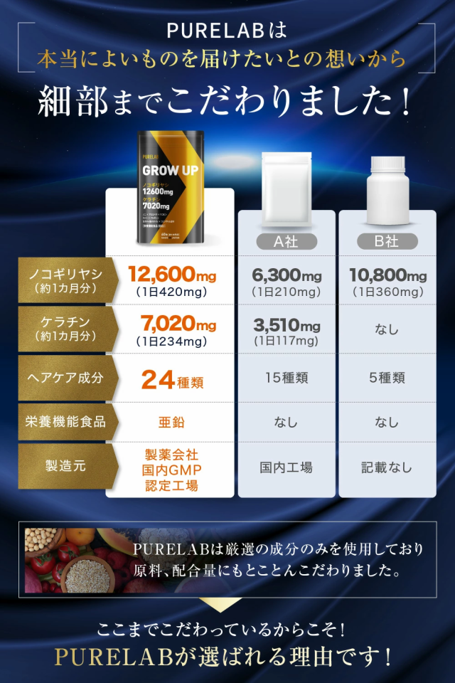PURELABはサポート成分として亜鉛を栄養機能食品で、表示出来る基準量を含んでいます。