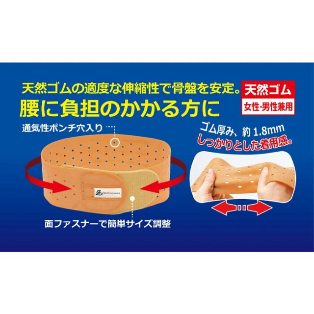 骨盤ベルト 産後ケア ゴム 日本製 男女兼用 S/M/L/LL/3L 大きいサイズ 天然ゴム 腰痛 ダイエット 薄型リフォーム 男女兼用 通気性抜群 ポンチ穴入り スポーツに 長時間の立ち仕事に ランキング受賞 【ゆうパケット】