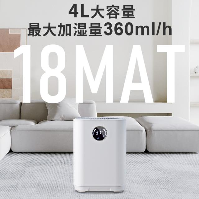 加湿器 気化式加湿器 大容量4L 最大18畳対応 自動湿度調整 タイマー付き 4重空気浄化 UVライト Ag+イオン 酵素 マイナスイオン 吸水性抜群 リモコン付き