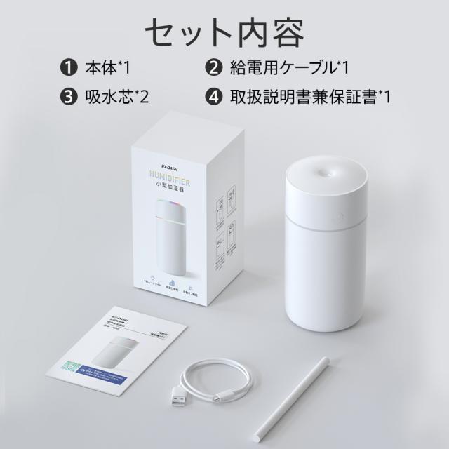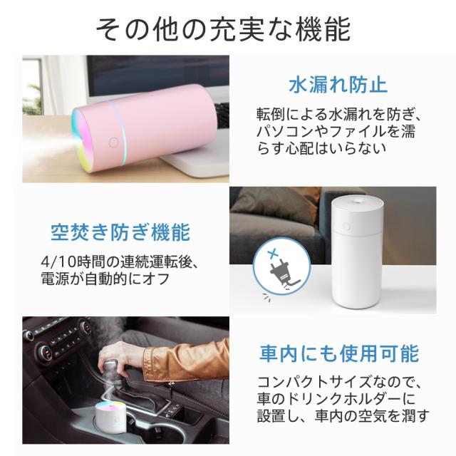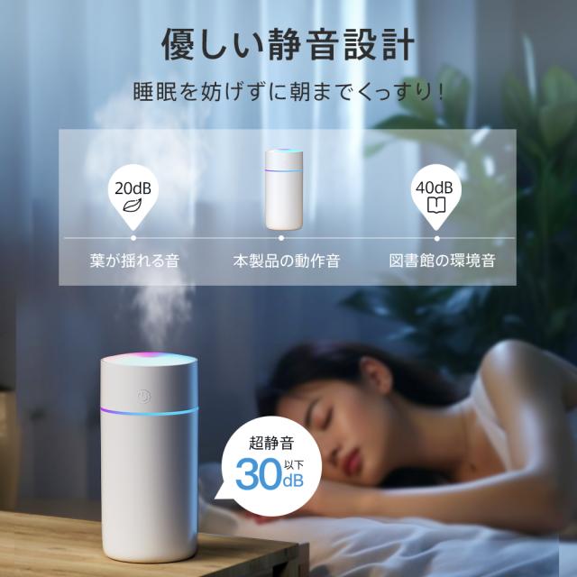 350ml大容量タンクの設計、寝る前に水を一回入れて朝まで部屋を加湿して、一回給水すると、長い時間を使用するミニ加湿器となります。