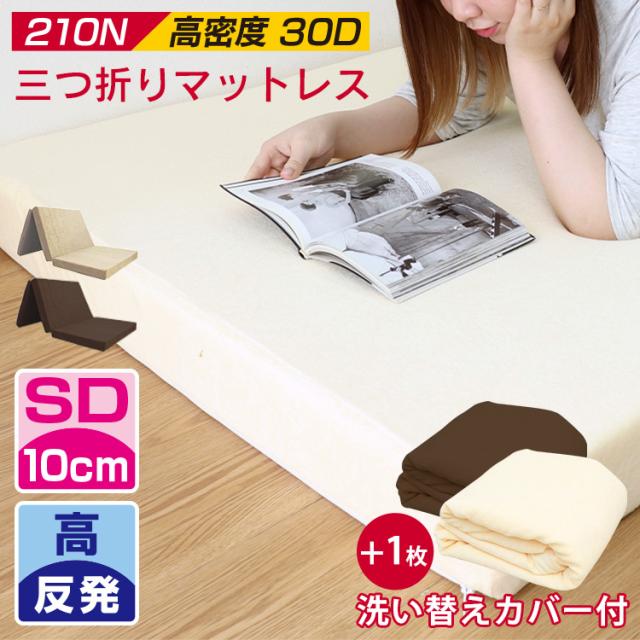 ワンランク上の高密度30D セミダブル 【替えカバー付】 硬め210N 高反発マットレス 3つ折り 10cm マットレス 三つ折り 高反発マット マットレス 高反発 マット ベッドマット ベッド 折りたたみ 布団 敷き布団 敷布団 寝具 送料無料