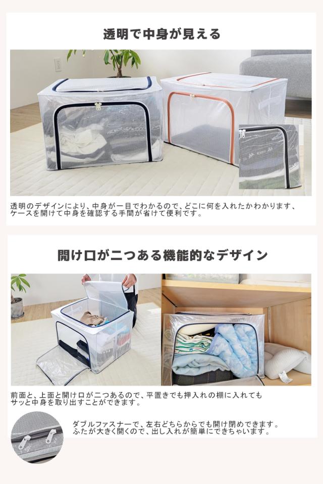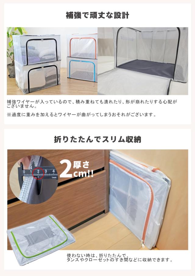 収納ボックス 大容量 軽量 折りたたみ コンパクト 布団収納 ケース 収納ケース 透明ボックス ダブルファスナー 一人暮らし 防水 中が見える 押し入れ収納 衣装ケース 衣類ケース おもちゃ収納 省スペース 実用的 多機能 実用デザイン 丈夫 多用途 衣替え 洋服 たくさん入る
