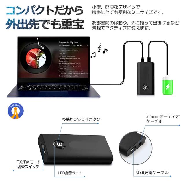 Bluetooth トランスミッター ブルートゥース 送信機 受信機 無線化 ワイヤレス レシーバー スピーカー イヤホン ゲーム オーディオ プロジェクター TRANSB10S