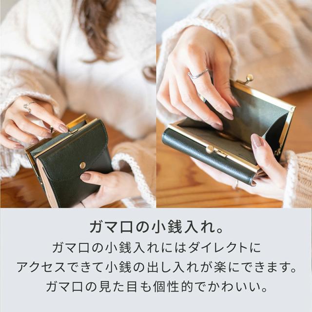 - お財布のがま口が大きく開くので、小銭が取り出しやすく、気に入って日々使っています。 いつも長財布だったので、大きさは、あまりコンパクトすぎず、大きすぎずな点も気に入りました。お店の方の対応もとても良く...