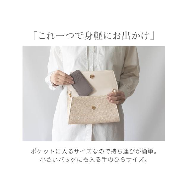 小さめバッグやポケットに収まるちょうど良いサイズ感のスマートウォレット。
