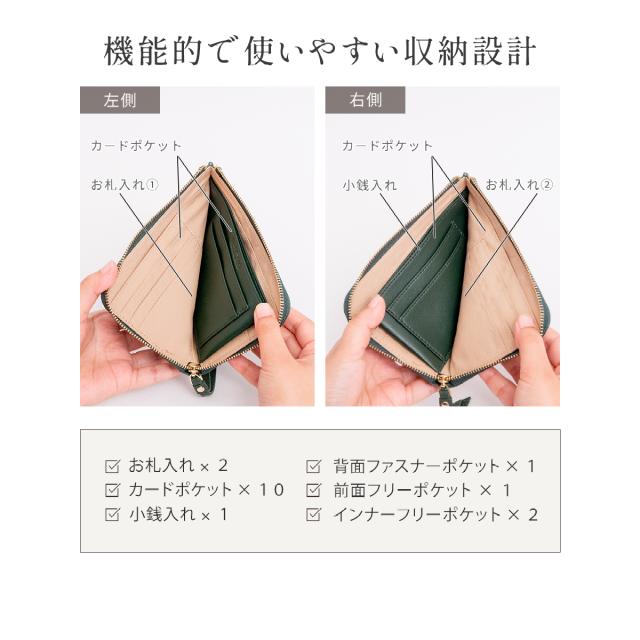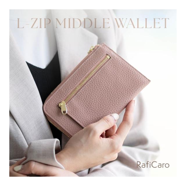 【限定1,000円OFFクーポン】【3,980円→2,980円】RafiCaro ミディアムサイズの薄型牛革財布 レディース 本革 牛革 L字 ファスナー ミニ財布 ミドル ウォレット コンパクト 軽い 軽量 スリム 薄型
