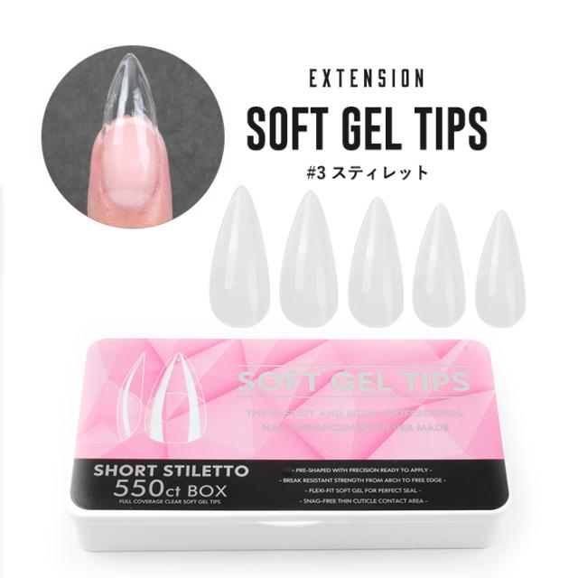 宅配便 【エクステンション】SOFT GEL TIPS 【3】スティレット | ジェルネイル セルフネイル ネイルチップ ロング ショート クリア ソフトチップ 長さ出し スカルプ ネイル ネイル ネイル用品
