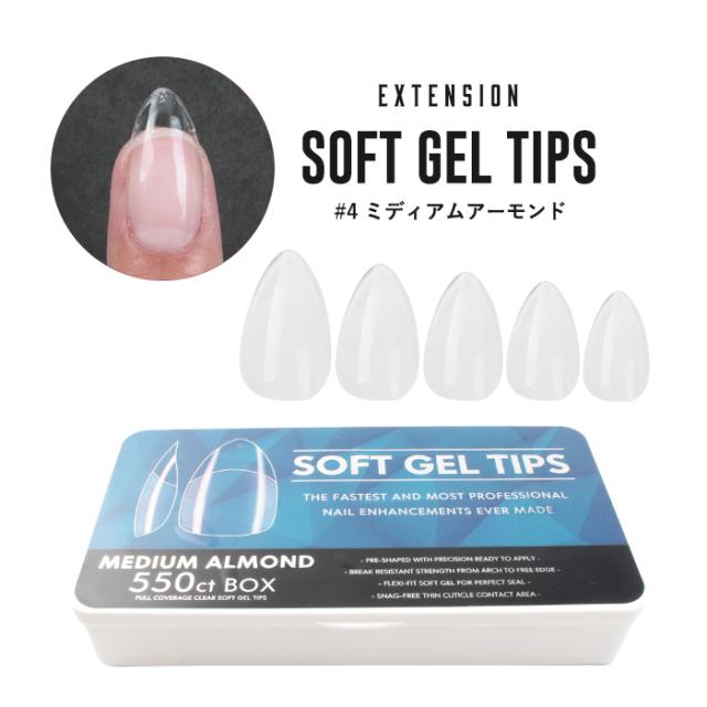 宅配便 【エクステンション】SOFT GEL TIPS 【4】ミディアムアーモンド | ジェルネイル セルフネイル ネイルチップ ロング ショート クリア ソフトチップ 長さ出し スカルプ ネイル ネイル ネイル用品