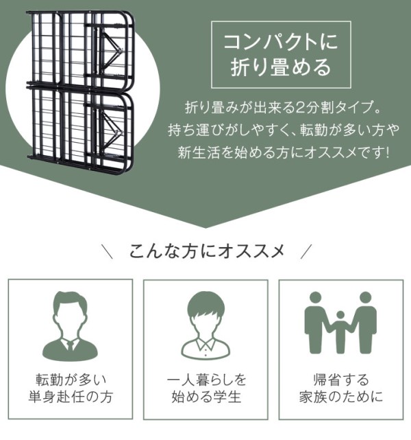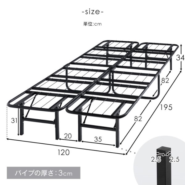 パイプベッド 折畳ベッド 折りたたみベッド セミダブルベッド 折りたたみ ベッド ベット 折りたたみベット ベッドフレーム 2つ折り 軽量 頑丈 省スペース スリム ワンルーム 黒 ブラック