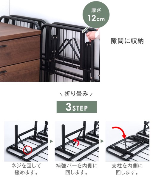 折りたたみベッド セミダブル 折りたたみらくらく スチール コンパクト パイプベッド スチールベッド アイアンベッド 折り畳みベッド セミダブルベッド ベッド ベッドフレーム SD 折りたたみ 折り畳み 軽量 ベッド下収納