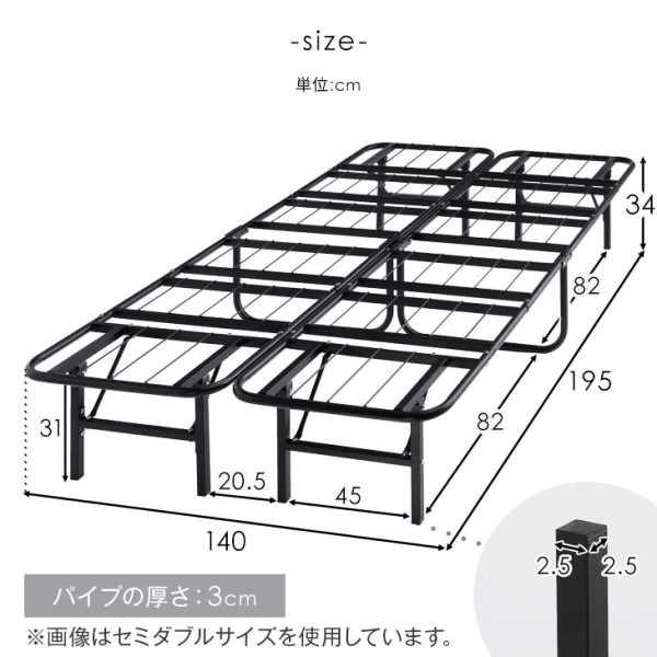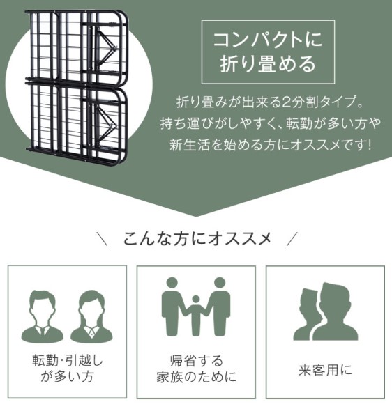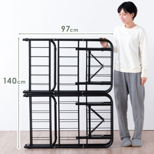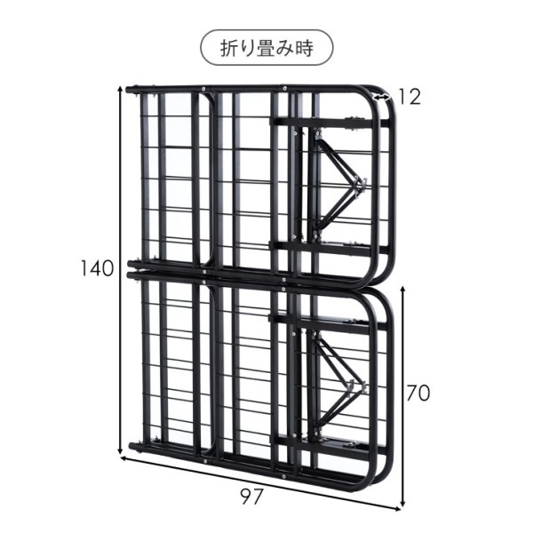パイプベッド 折畳ベッド 折りたたみベッド シングルベッド 折りたたみ ベッド ベット 折りたたみベット ベッドフレーム 2つ折り 軽量 子供部屋 通気性 湿気対策 黒 ブラック