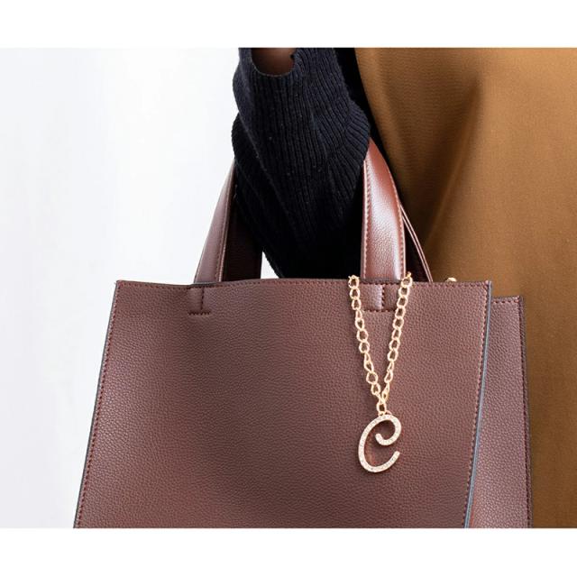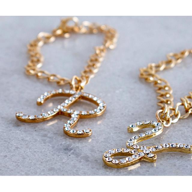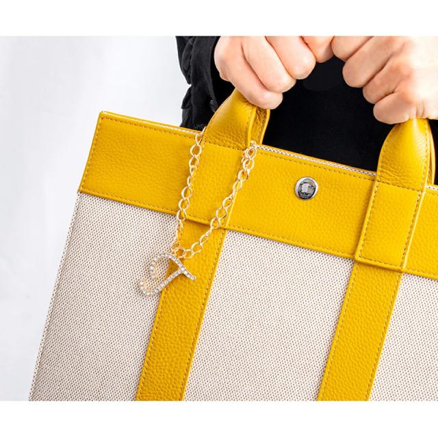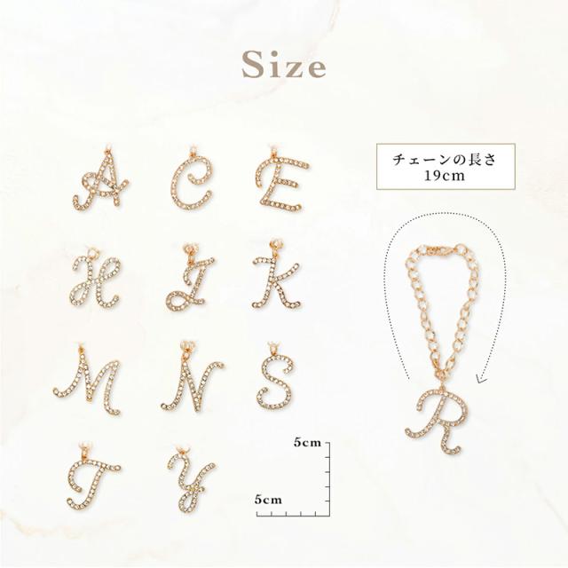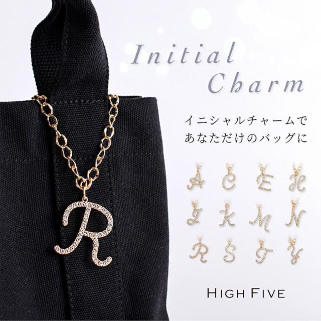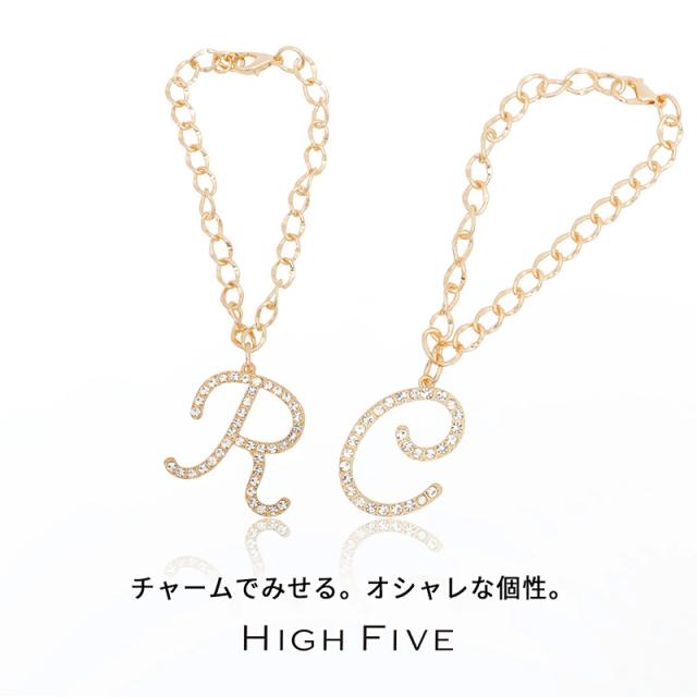 HIGH FIVE ラインストーンイニシャルチャーム アルファベットチャーム チェーン付き バッグチャーム イニシャル 名前 ゴールド