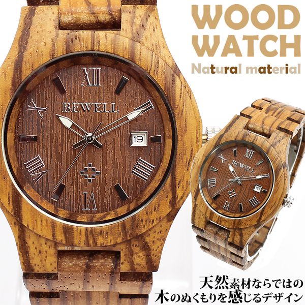 木製腕時計天然素材 木製腕時計 日付カレンダー セイコーインスツル ムーブメント WDW024-01 メンズ腕時計 送料無料
