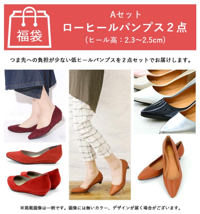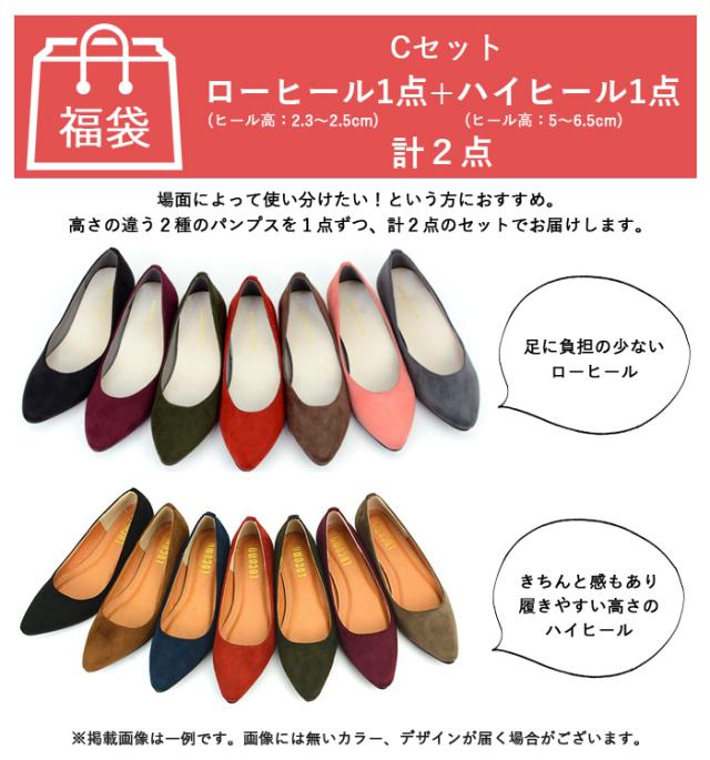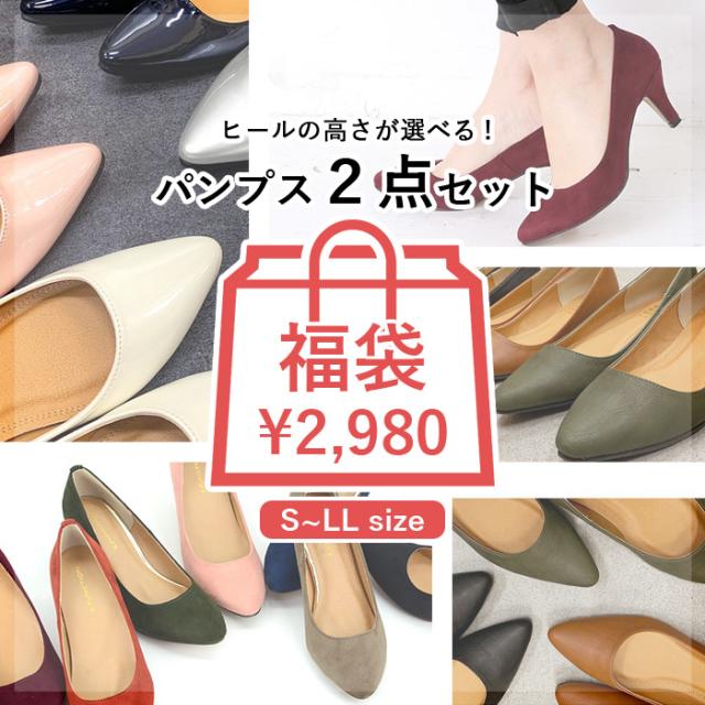 福袋 パンプス 2点セット ローヒール ハイヒール 靴 レディース 痛くない 履きやすい 【沖縄県除き送料無料】アーモンドトゥ ポインテッドトゥ スエード エナメル 低反発インソール カジュアル アウトレット ヒールの高さが選べるパンプス福袋 (fb-007) agesugi_sfa