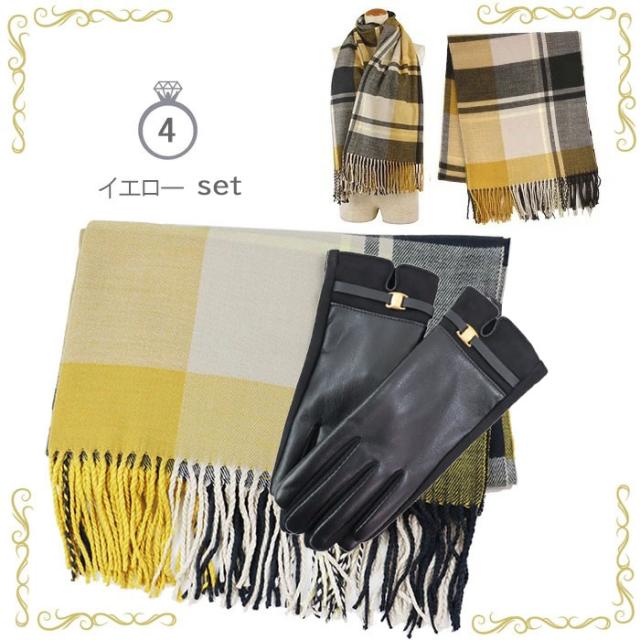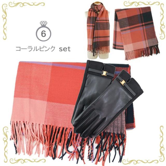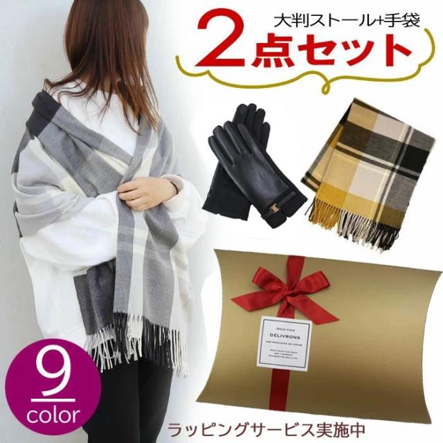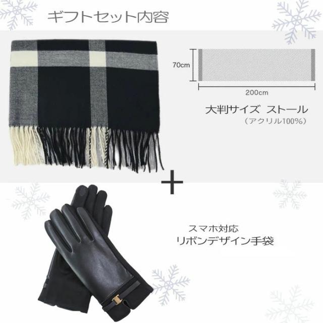 【ピローBOXラッピング無料】ギフトセット 大判 ストール 手袋 フェミニン リボンデザイン マフラー カシミアタッチ ストール 誕生日 記念日 プレゼント お祝い ab-554400